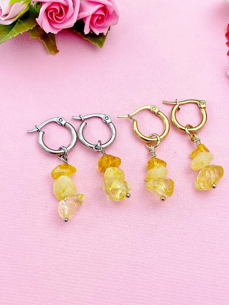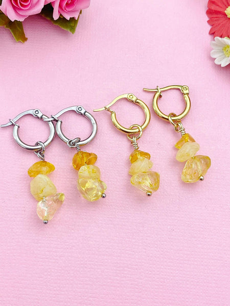 Citrine Earrings, Gold or Silver Hoop Earrings, Natural Gemstone Jewelry N4238A