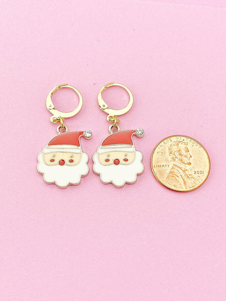 These are gold-toned Santa Claus charm on stainless steel ear hooks.