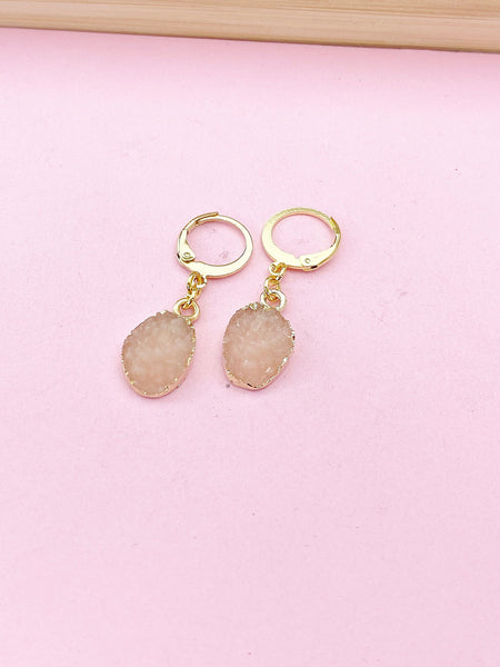 These are gold-toned Druzy Resin on stainless steel ear hooks.