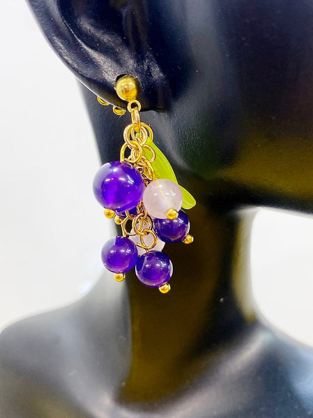 Gold Natural Jade Grape Earrings - Lebua Jewelry, Gemstone Jewelry Gifts,
