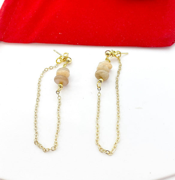 Gold Natural Sunstone Earrings - Lebua Jewelry, Gemstone Jewelry Gifts,