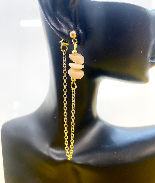 ♥ Natural Sunstone, Chip, Chain Drop Earrings, Gold, Size: about 0.08 inch(2mm) wide, 2.56 inch(65mm) long, pin: 0.03 inch(0.7mm), stone: 0.28~13x0.20~8x0.10~4 inch(7~13x5~8x2.5~4mm)