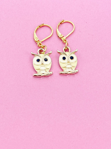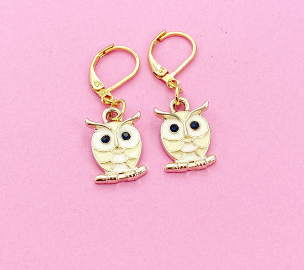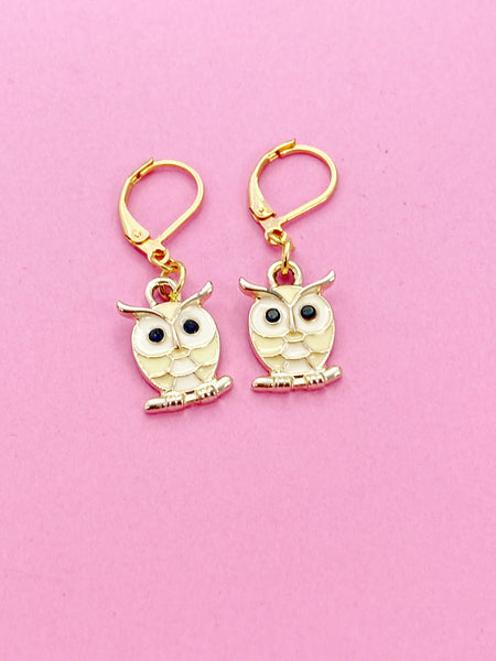 Gold Owl Charm Earrings, Owl Lover Gift, N3055