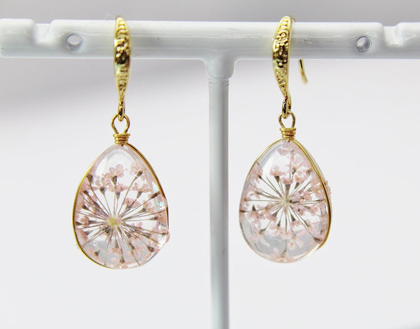 These are gold-toned Pink Press Flowe on stainless steel ear hooks.