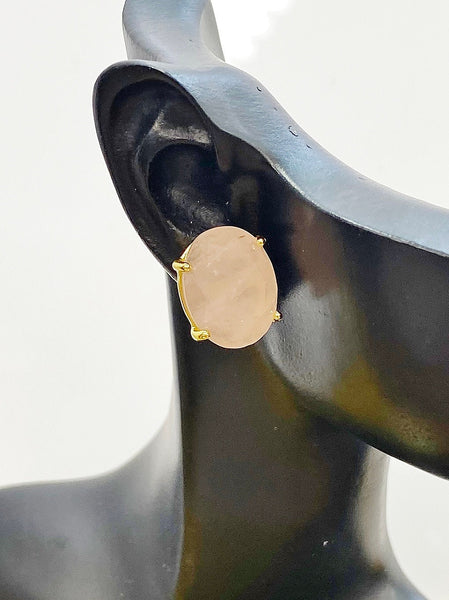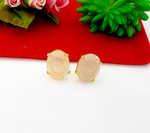 Gold Rose Quartz Stud Earrings - Lebua Jewelry, Natural Rose Quartz, Gifts for Girls,