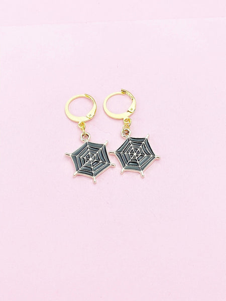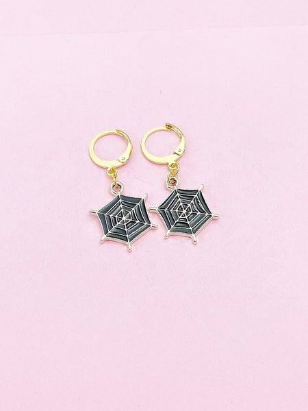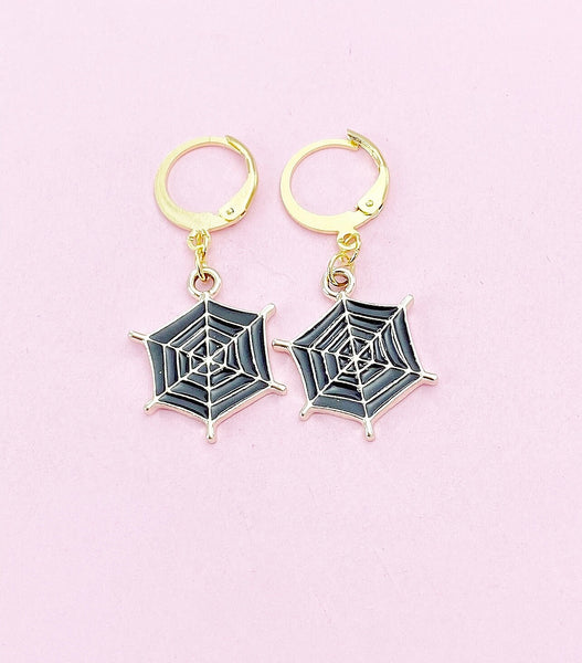 These are gold-toned Black Spider Web on stainless steel ear hooks.
