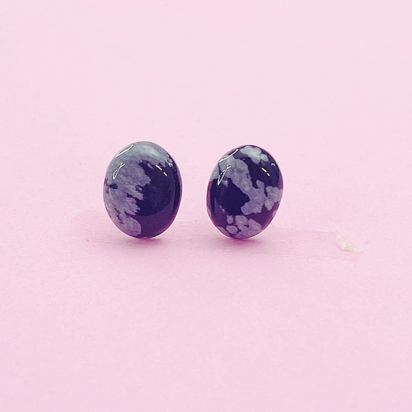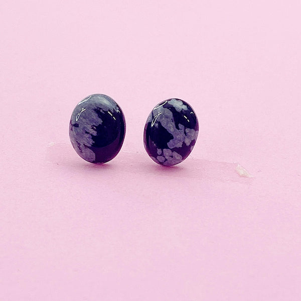 These are Natural Snowflake Obsidian on Surgical Stainless Steel ear stud.