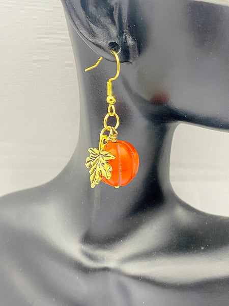 Orange Pumpkin Maple Leaf Earrings, Fall Autumn Gift, Halloween Earrings,