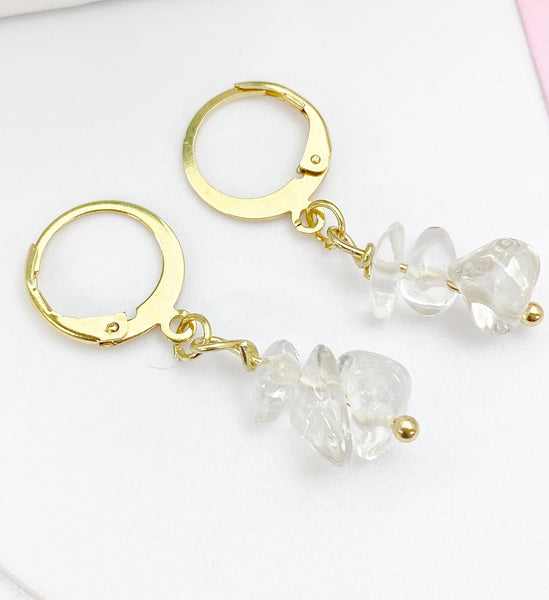 Quartz Earrings in Gold or Silver, Natural Quartz Gemstone Jewelry, N6348