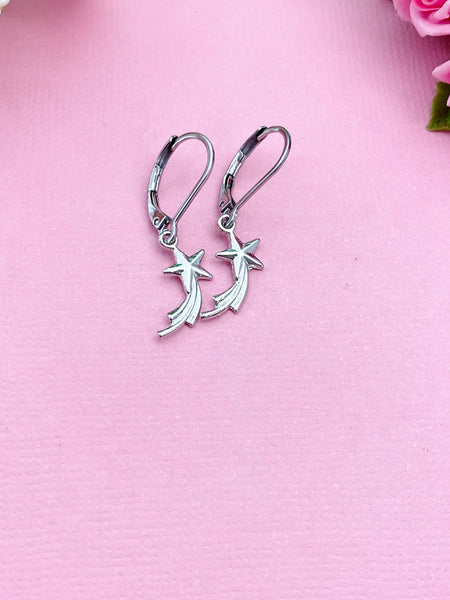 Shooting Star Earrings, Stainless Steel Earrings, Birthday Gift, Mother's Day Gift, Hypoallergenic, Dangle Hoop Lever-back Earrings,