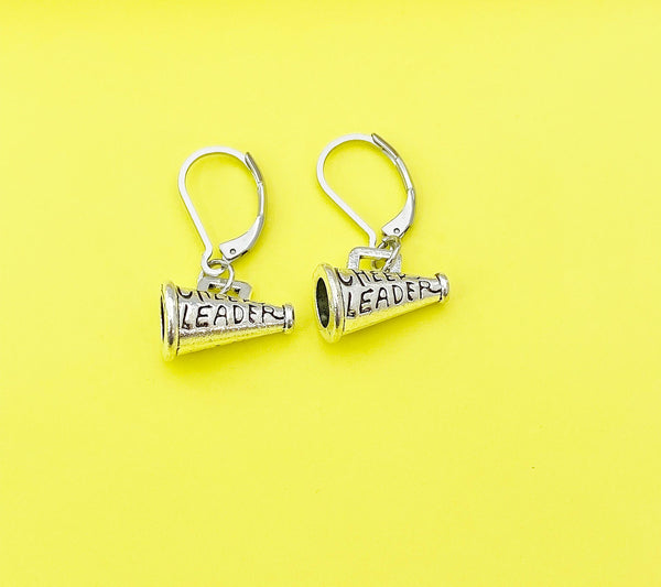 Silver Megaphone Cheerleader Charm Earrings, N5299B