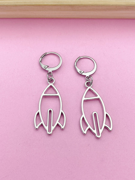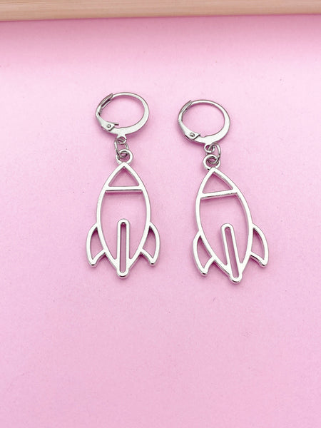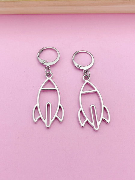 This is silver tone Rocket Charm on Stainless Steel Earring Findings