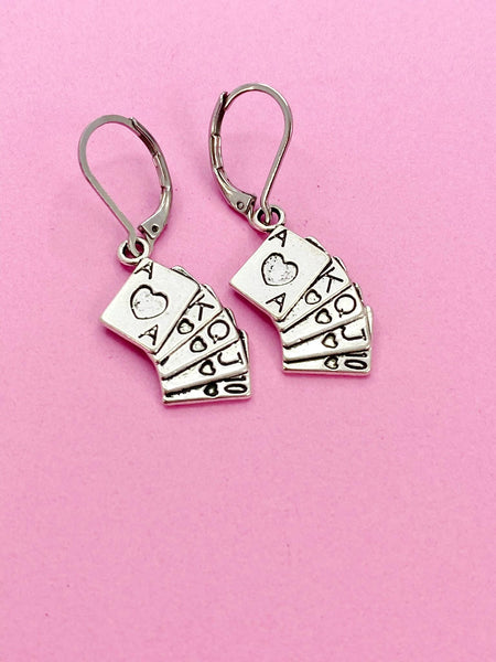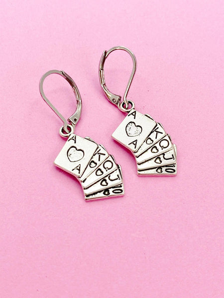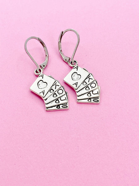 Poker Playing Cards Earrings, Hypoallergenic, Dangle Hoop Lever-back Earrings,