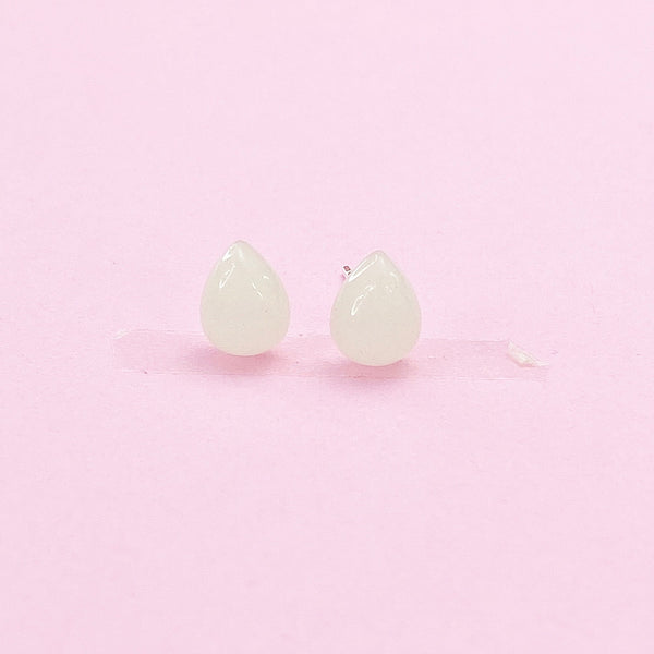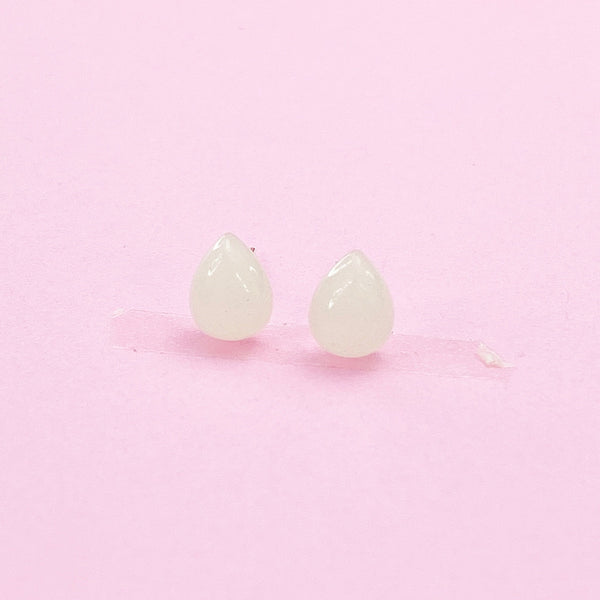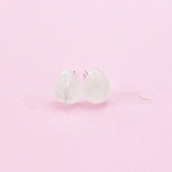 These are TINY Natural Quartz Teardrop on 925 Sterling Silver Round Flat Pad Stud Earring Findings.