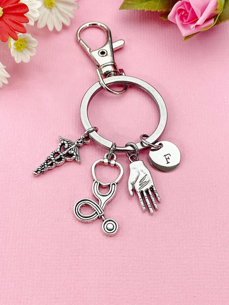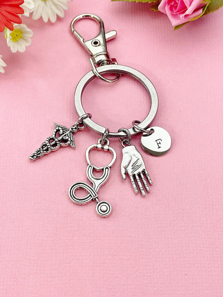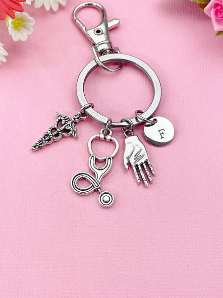 Caduceus Stethoscope Hand Palm Keychain, Doctor Nurse Keychain, Hand Palm Medical Charm, N6404K