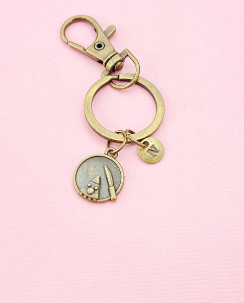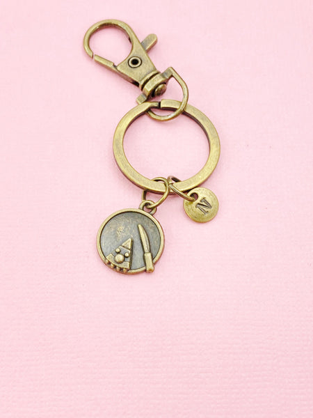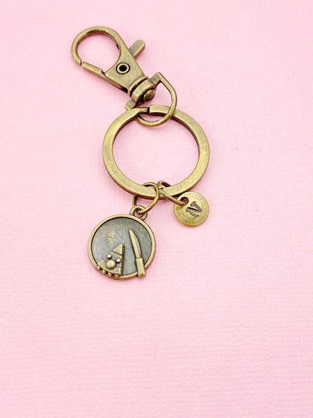 This is a bronze -tone cake on plate charm with hand stamped initial charm on brass/stainless steel 18 inches chain or bracelet or keyring.