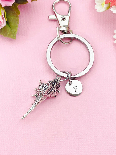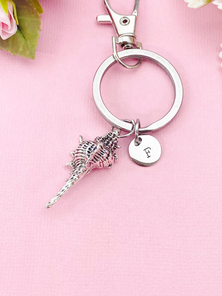 This is a silver -tone conch charm with hand stamped initial charm stainless steel 18 inches chain or bracelet or keyring.