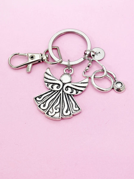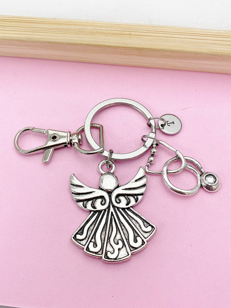 Doctor Nurse Gift, Angel Gift, Guardian Angel Stethoscope Keychain, Good Luck Charm, Personalized Gift, Guardian Angel, N3084