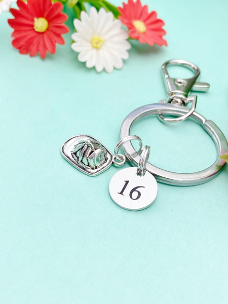 This is a silver-tone helmet charm with engraving initial or number charm on stainless steel necklace or key ring.