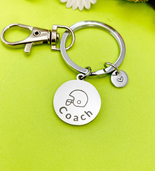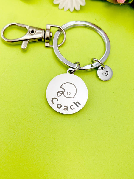 This is an engraving football helmet coach on stainless steel charm with hand stamp initial charm onkeyring.