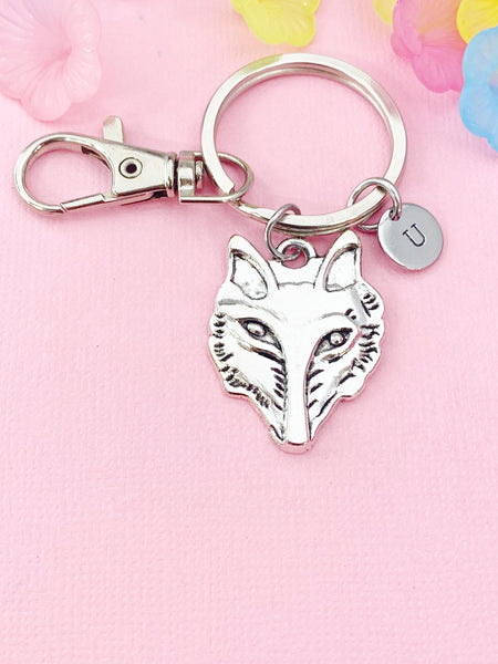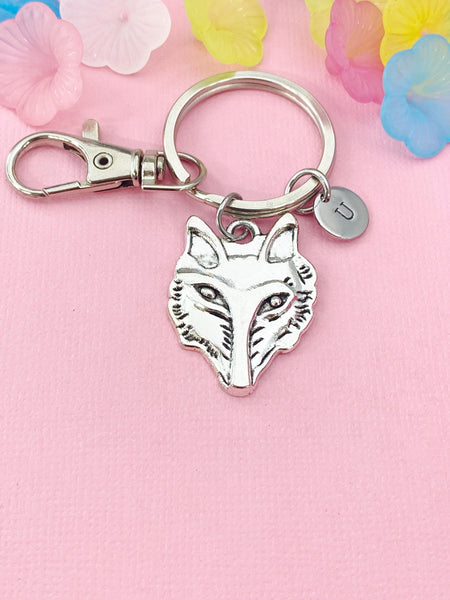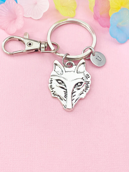 This is a silver -tone fox charm with hand stamped initial charm stainless steel 18 inches chain or keyring.