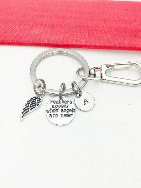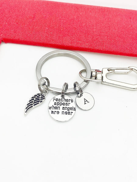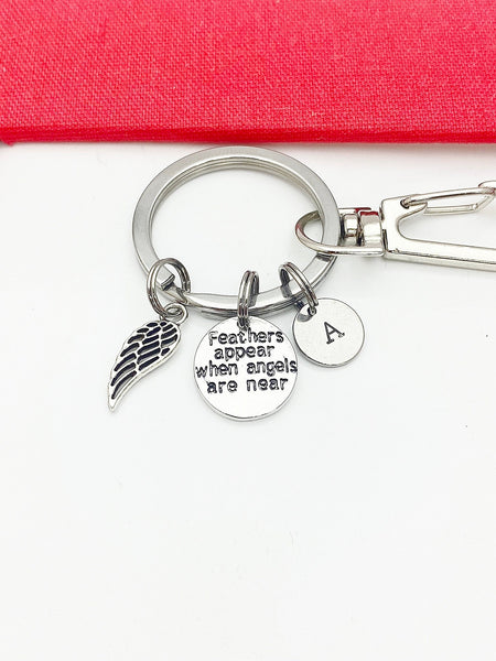 Guardian Angel Keychain, Silver Angel Wing Charm, Feather Charm, Angel Gift, Memorial, Condolences Gift, Personalized Gift,