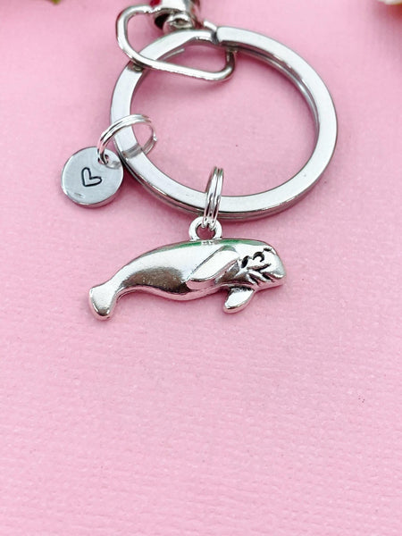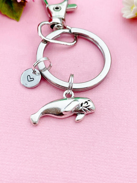 Manatee Keychain, Silver Manatee Seal Sea Cow Ocean Fish Charm, Personalized Gift, N5156