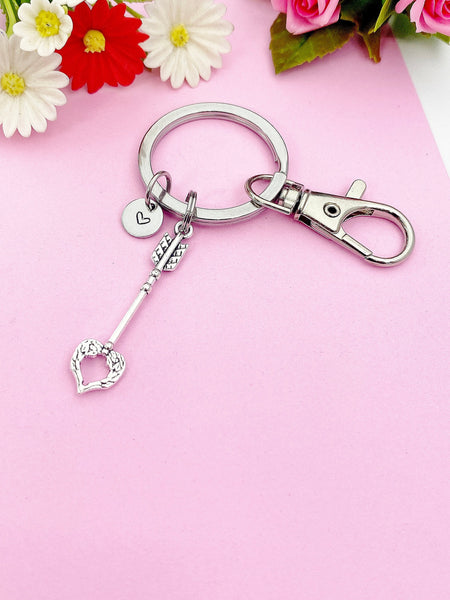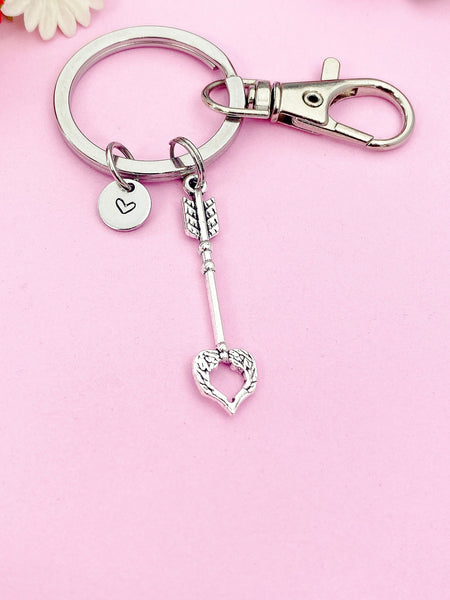 Silver Arrow Angel Wings Heart Charm Keychain Guardian Angel Gifts Ideas Personalized Customized Made to Order Jewelry, AN790