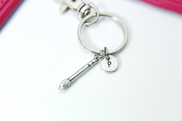 Silver Artist Paint Brush Charm Keychain, Paint Brush Charm, Chinese Calligraphy Brush Pen Charm, Art Teacher Gift, Personalized,