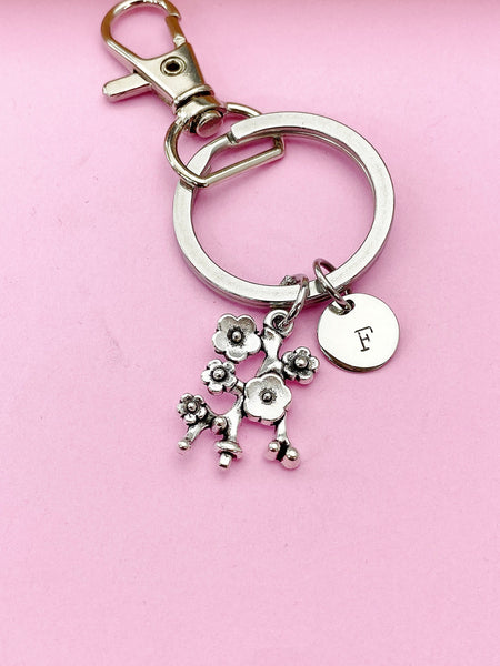 This is a silver-tone Cherry Blossom Branch charm with hand stamped initial charm on keyring.