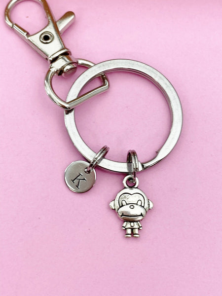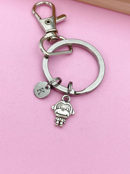 Silver Cute Monkey Charm Keychain Wildlife Love Gifts Idea Personalized Customized Made to Order Jewelry, BN160