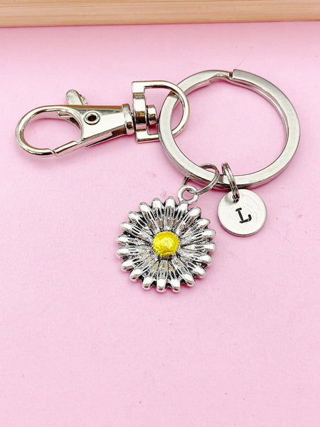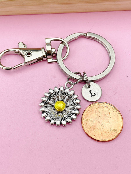 Silver Daisy Charm Keychain, Sunflower Keychain, N1343