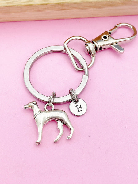 Silver Greyhound Charm Keychain, Greyhound Pet Gift Ideas Personalized Customized Made to Order, N1583