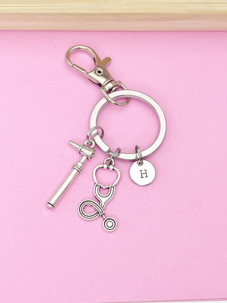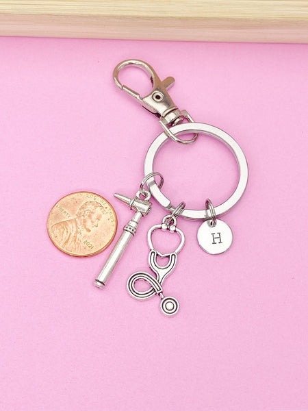 Silver Otoscope Stethoscope Charm Keychain, Otoscope Charm, Audiology Medical Device Charm, Doctor Gift, Personalized Gift, N1032