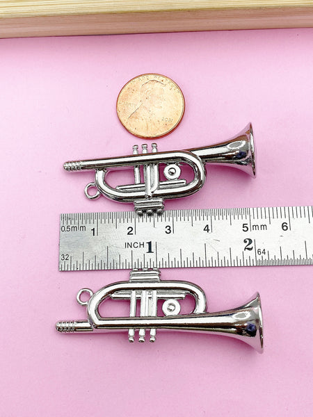 ♥ Trumpet Charm, Alloy Pendants, Cadmium Free & Lead Free, Platinum, Size: about 0.79 inch(20mm) wide, 2.01 inch(51mm) long, 0.57 inch(14.5mm) thick,