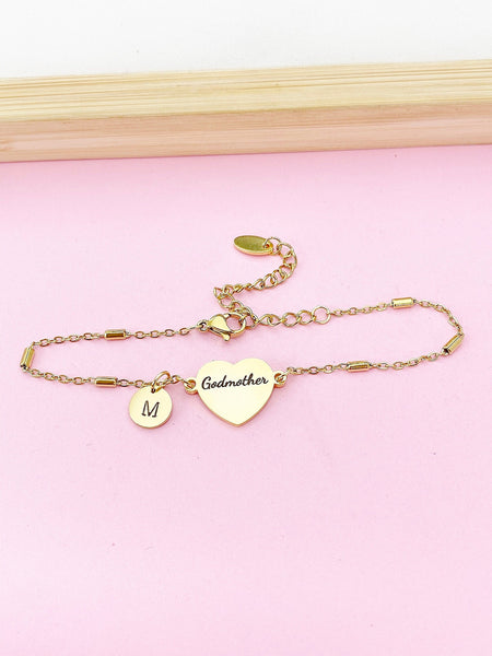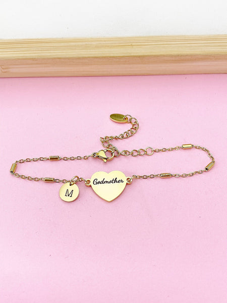 Godmother Gifts, Gold Godmother Bracelet, Heart, Godmother Jewelry, Mother's Day Gift, Godmother Goddaughter Gift, D260