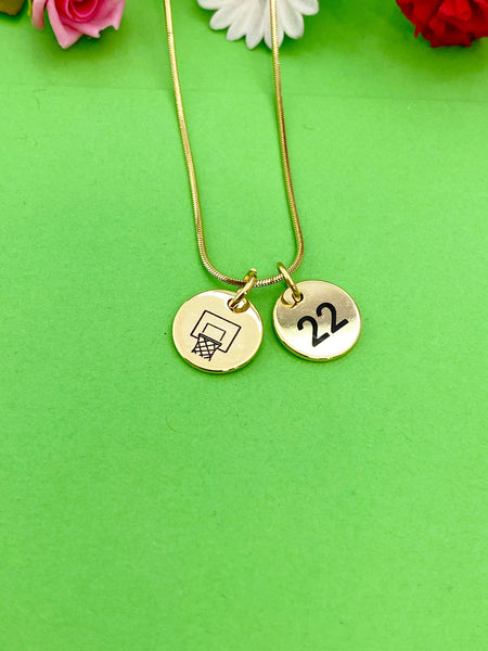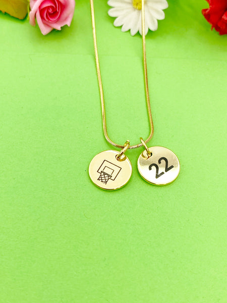 ♥ Basketball Hoop and Number, engraving on Stainless Steel Pendants or Brass, Gold Color, Size: about 3/8" or 10-13mm in diameter