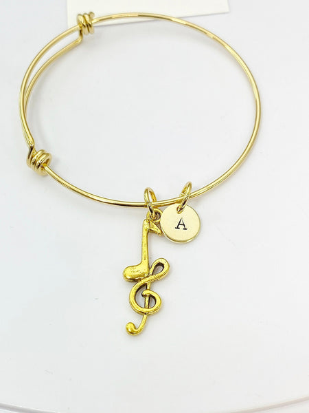 Silver Music Note Bracelet, Music Bangle, Personized Initial Bracelet,