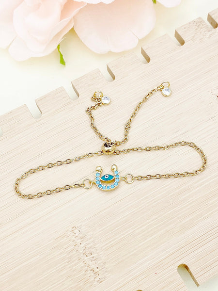 Luck Horseshoe Evil Eye Bracelet, Luck Protective Gift, Bolo Bracelets, Personized Initial Bracelet,