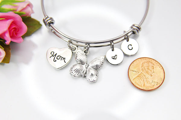 Mom Bracelet, Silver Mom Butterfly Bracelet, Mom Charm, Mom Gift, Mother's Day Gift, Personalized Gift,