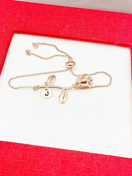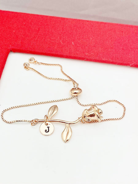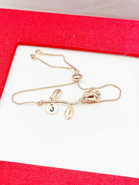 Rose Gold Rose Bracelet, June Birth Flower Gift, Personalized Gift,