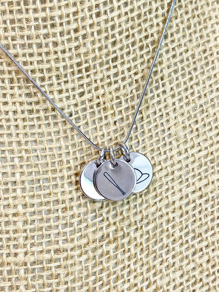 ♥ Baseball Bat, Cap and Initial, engraving on Stainless Steel Pendants or Brass, Silver Color, Size: about 3/8" or 10-13mm in diameter
