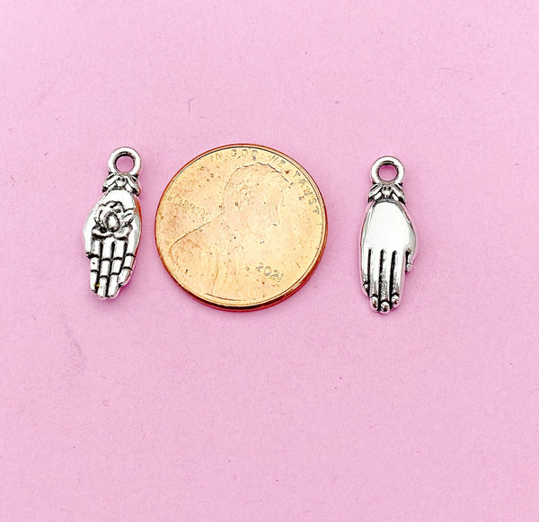 ♥ Hand with Lotus Charm, Tibetan Style Alloy Pendants, Lead Free & Cadmium Free, Antique Silver, Size: about 6.5mm wide, 18mm long, 2.5mm thick or 0.71x0.26x0.10inch