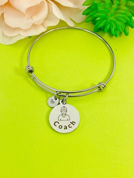 Silver Coach Bracelet, Best Christmas Gifts for School Sport Coach Team, Personalized Customized Monogram Jewelry, D159
