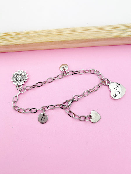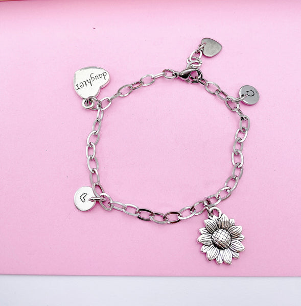 Silver Daughter Sunflower Charm Bracelet Stepdaughter Daughter Gifts Ideas Personalized Customized Made to Order Jewelry N1383