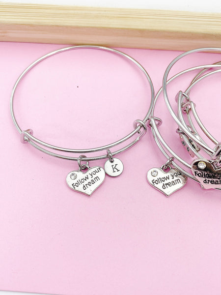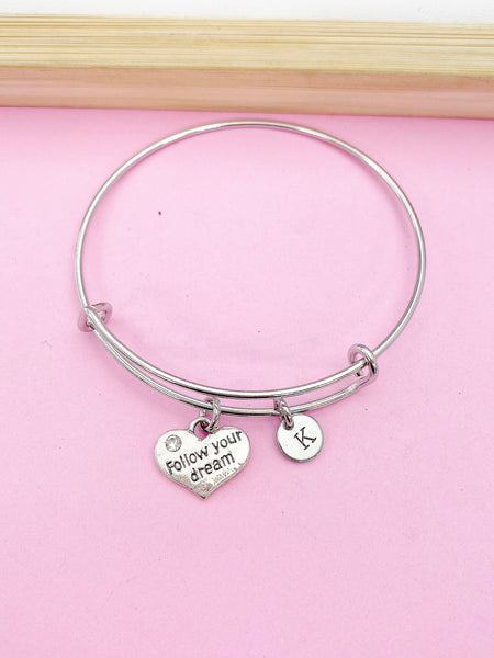 Silver Follow Your Dream Heart Charm Bracelet Graduation Gifts Ideas Personalized Customized Made to Order Jewelry, AN828