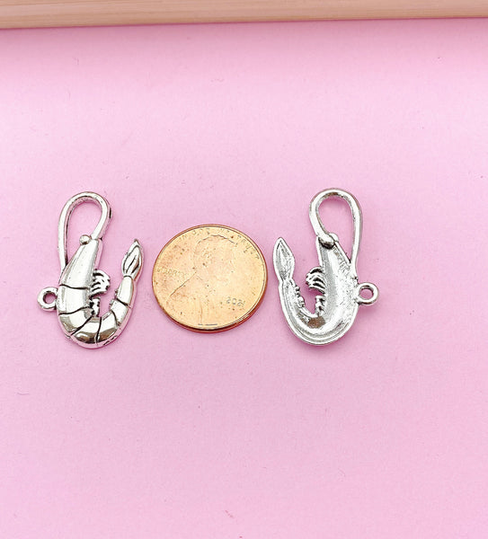 This is a silver-tone shrimp charm with hand stamped initial charm on Adjustable Waxed Cord Bracelet.