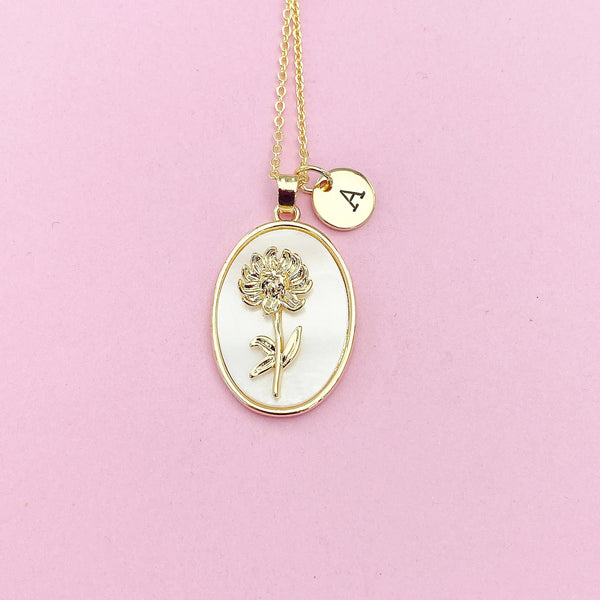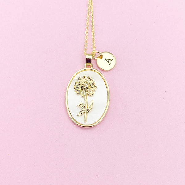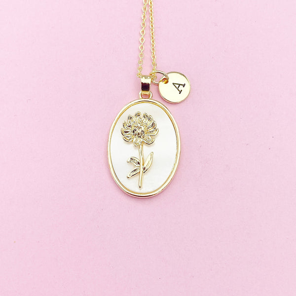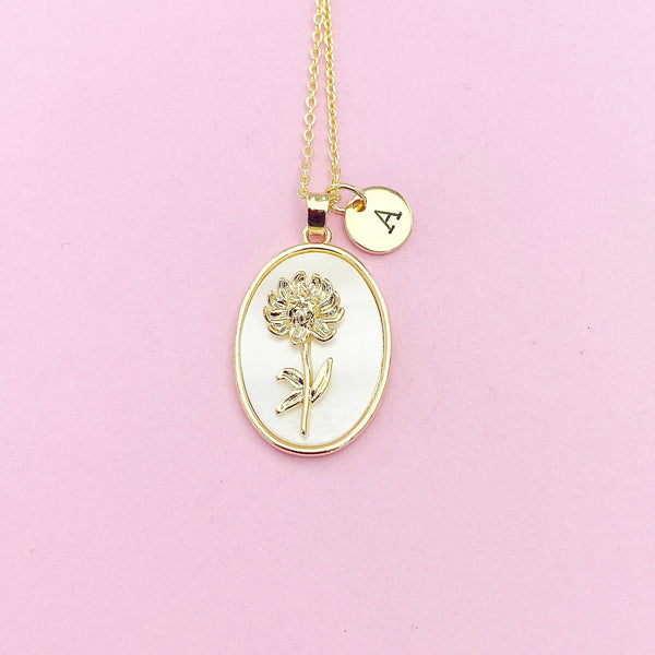 Chrysanthemum Necklace, November Flower, Mother of Pearl Jewelry Gift - LeBua Jewelry, Peony, Botan Japanese Peonies, N4889