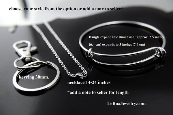 ♥ Keyring 30mm or Necklace 18 inches or Bangle metal (expandable), approx. bangle 57-65mm choose from a drop-down menu.
