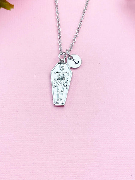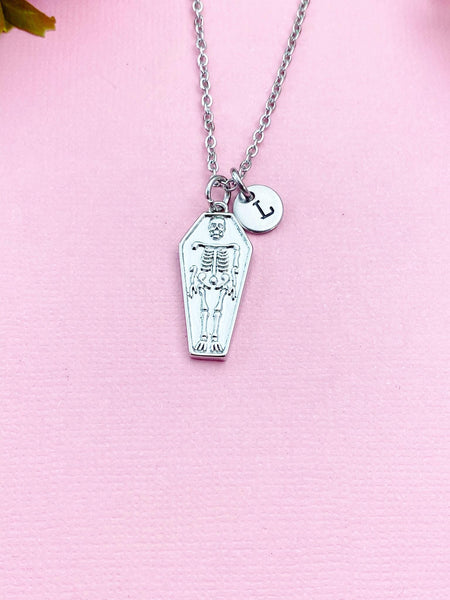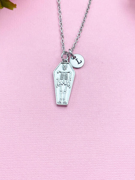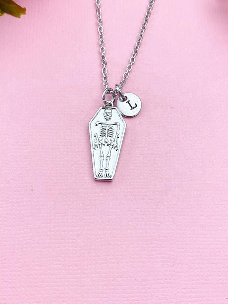 Coffin Skeleton Charm Necklace, Personalized Gift, N3880